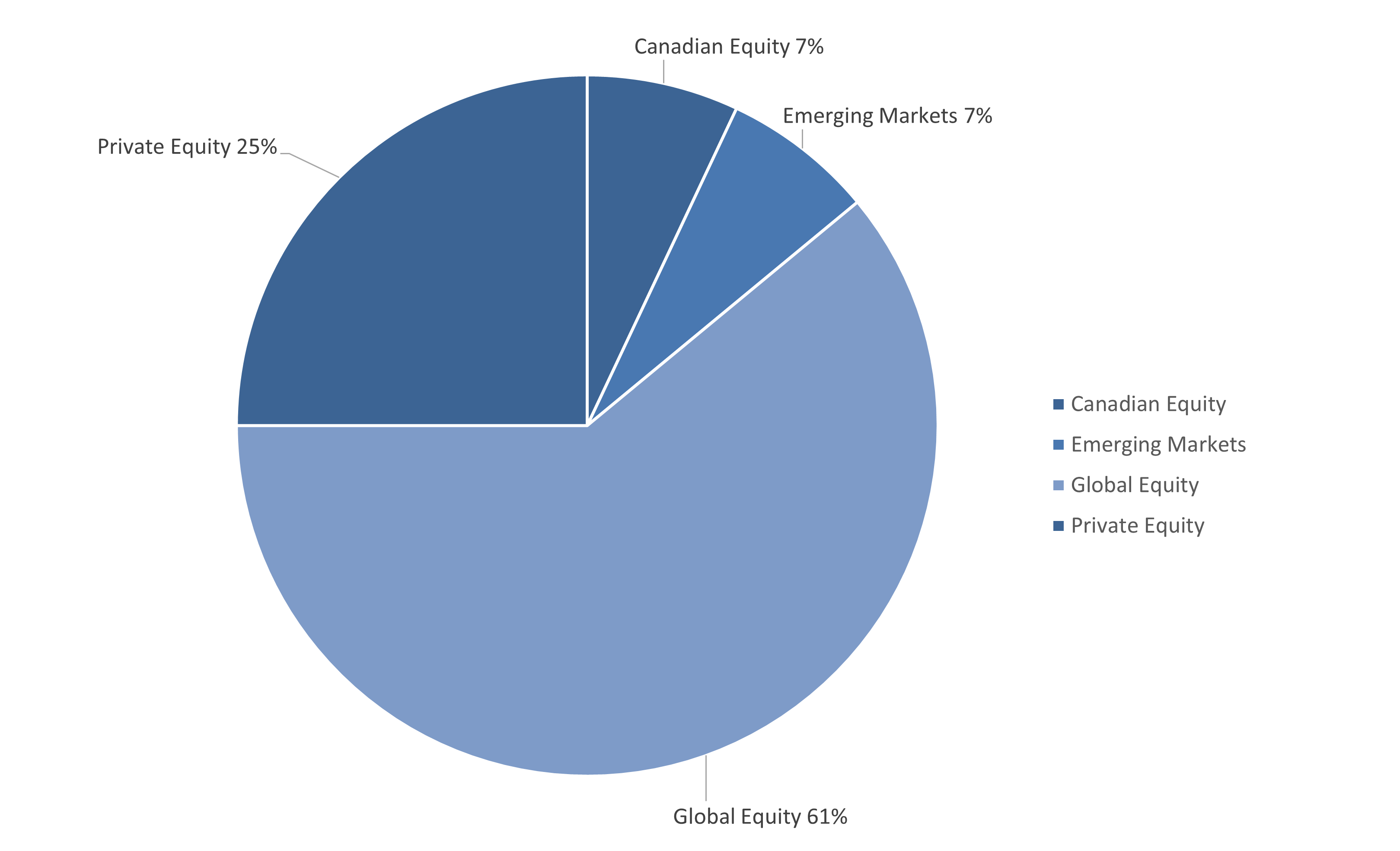 Private equity represents ownership stakes in privately owned and managed corporations. We invest in private equity due to the diversification benefit it provides over public equities as well as its higher expected return over the longer-term.