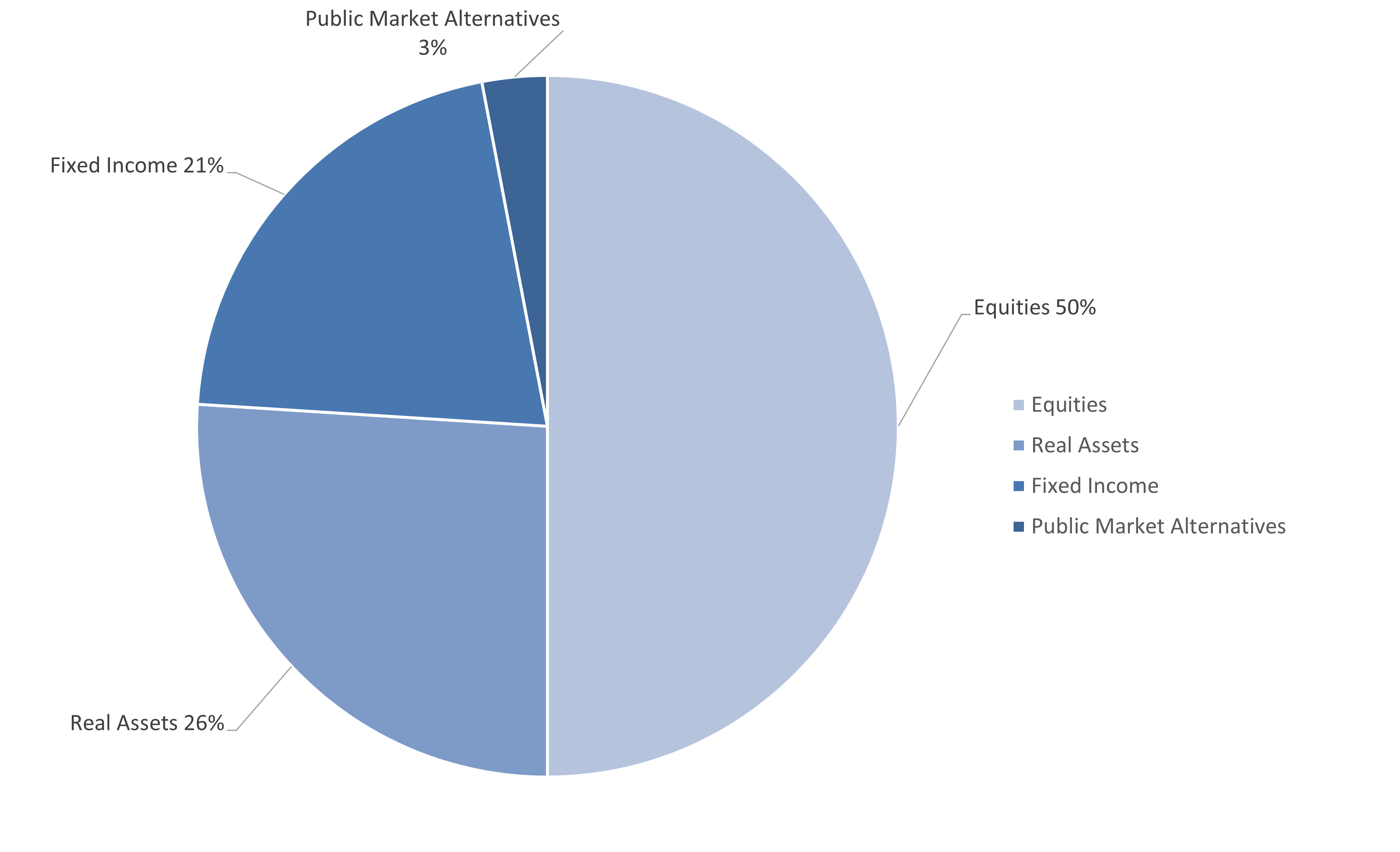 Public Market Alternatives consists of investments in fund structures that are absolute return oriented and aim to provide a steady return stream in excess of cash. These investments also have a lower correlation to the Plan’s other traditional asset classes. Currently, we have 3% of the Plan’s assets invested in public market alternatives.